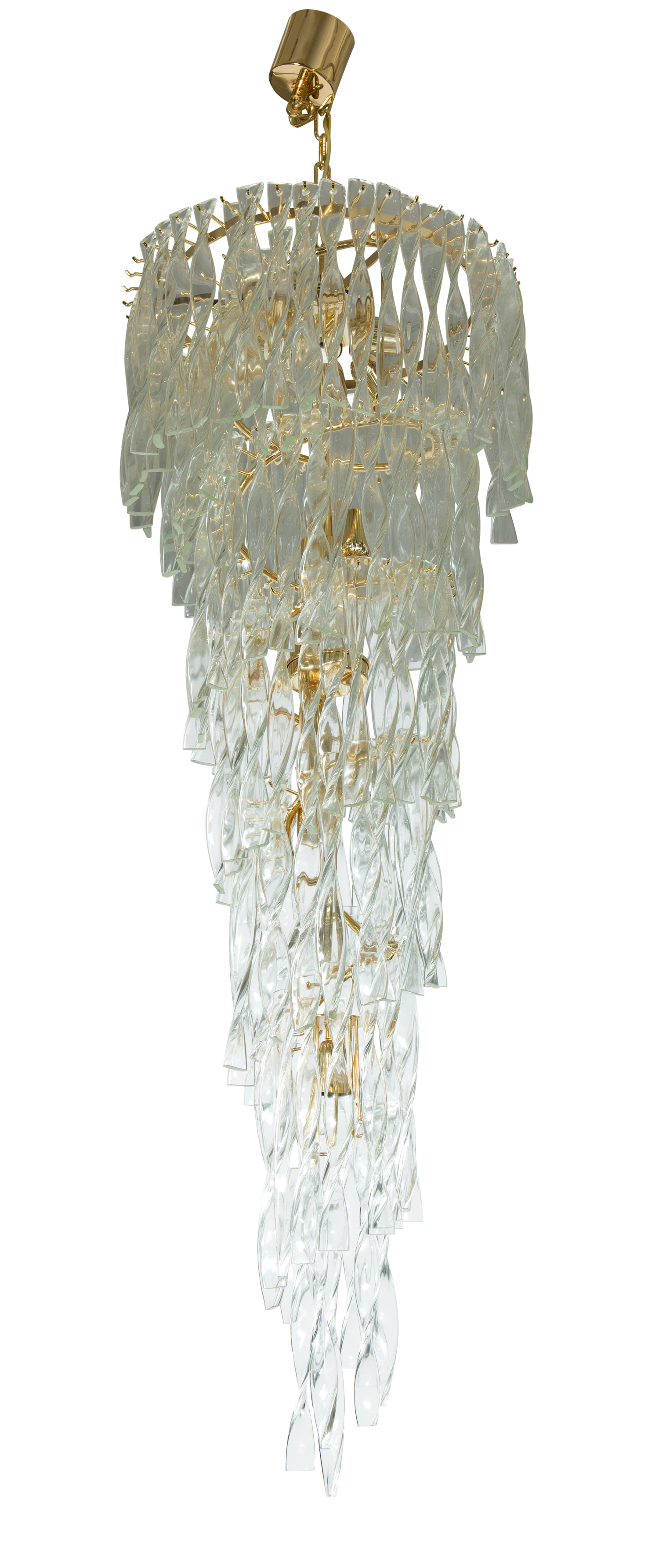 Chandelier restored. Some minor scratches to glass pieces. Overall very good condition.