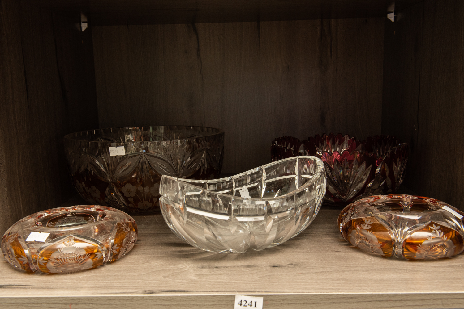 A COLLECTION OF AMBER FLASHED CUT CRYSTAL GLASS WARE, LEONARD JOEL LOCAL DELIVERY SIZE: SMALL