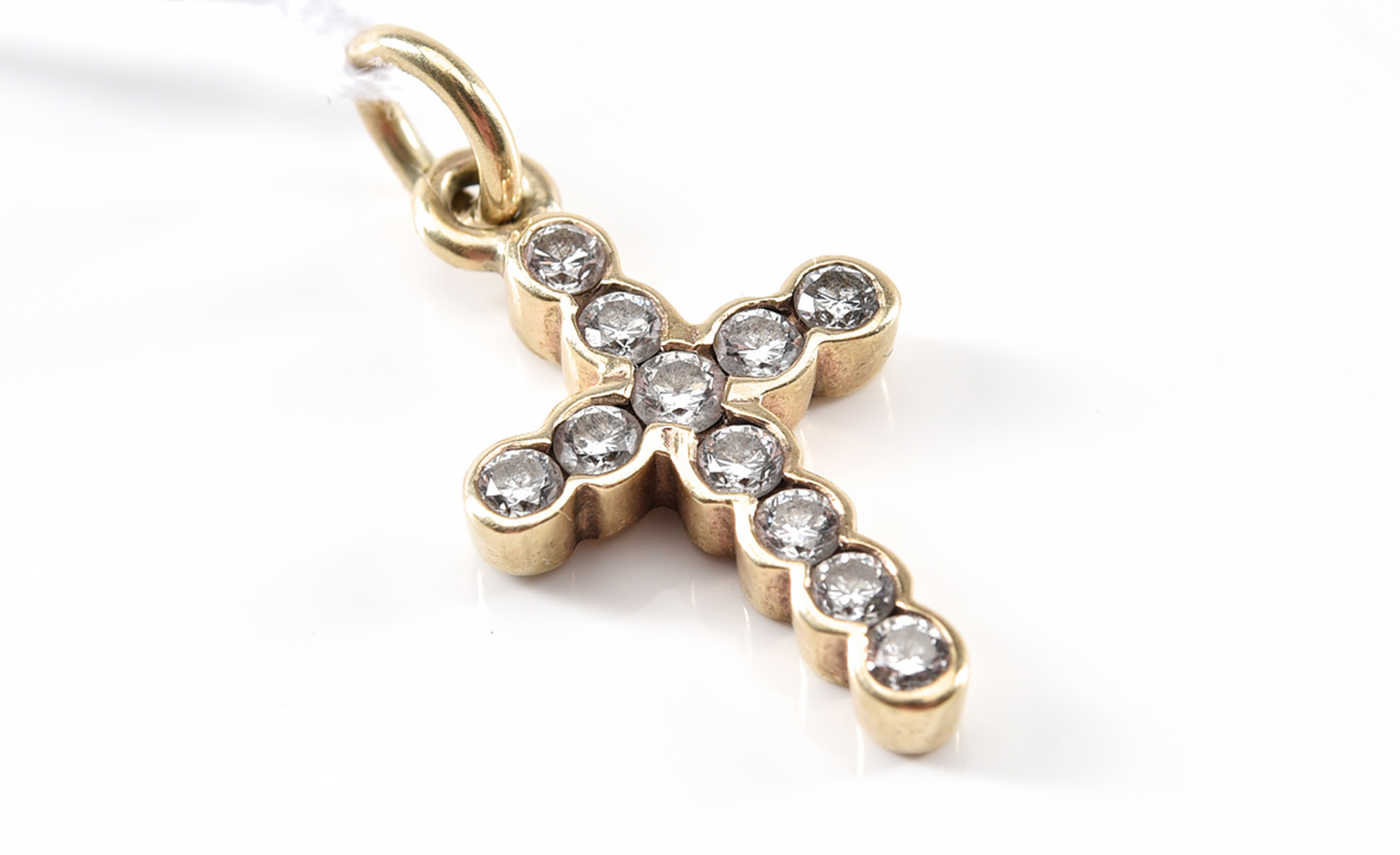 A DIAMOND SET CROSS PENDANT IN IN 9CT GOLD