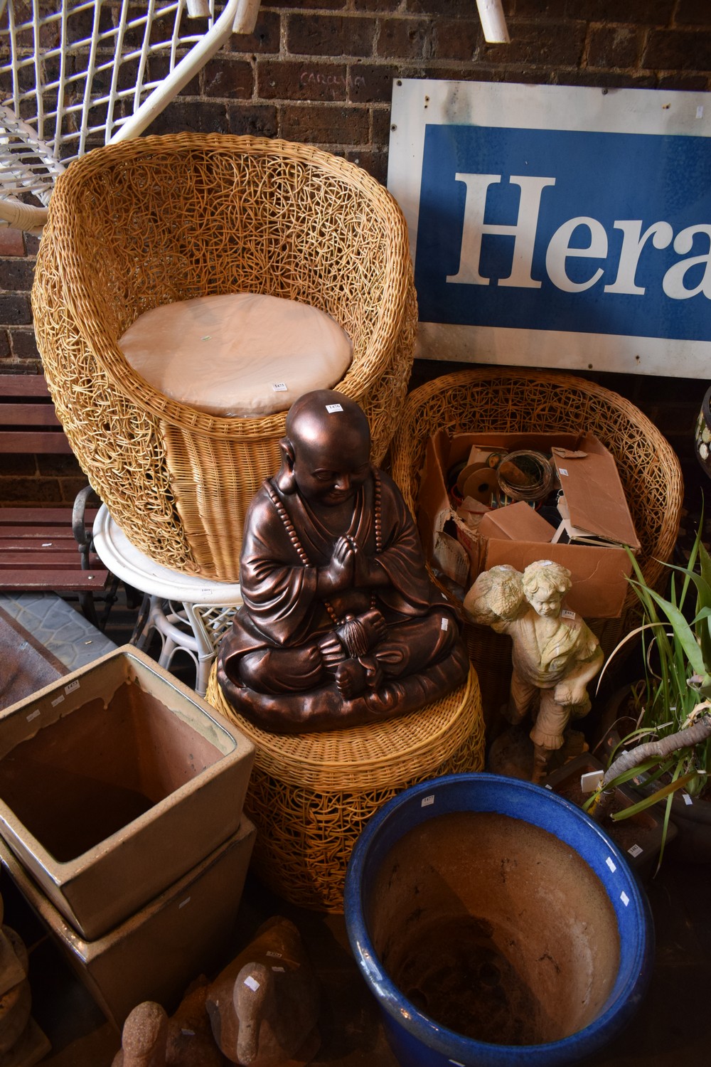 A THREE-PIECE OUTDOOR WICKER SETTING