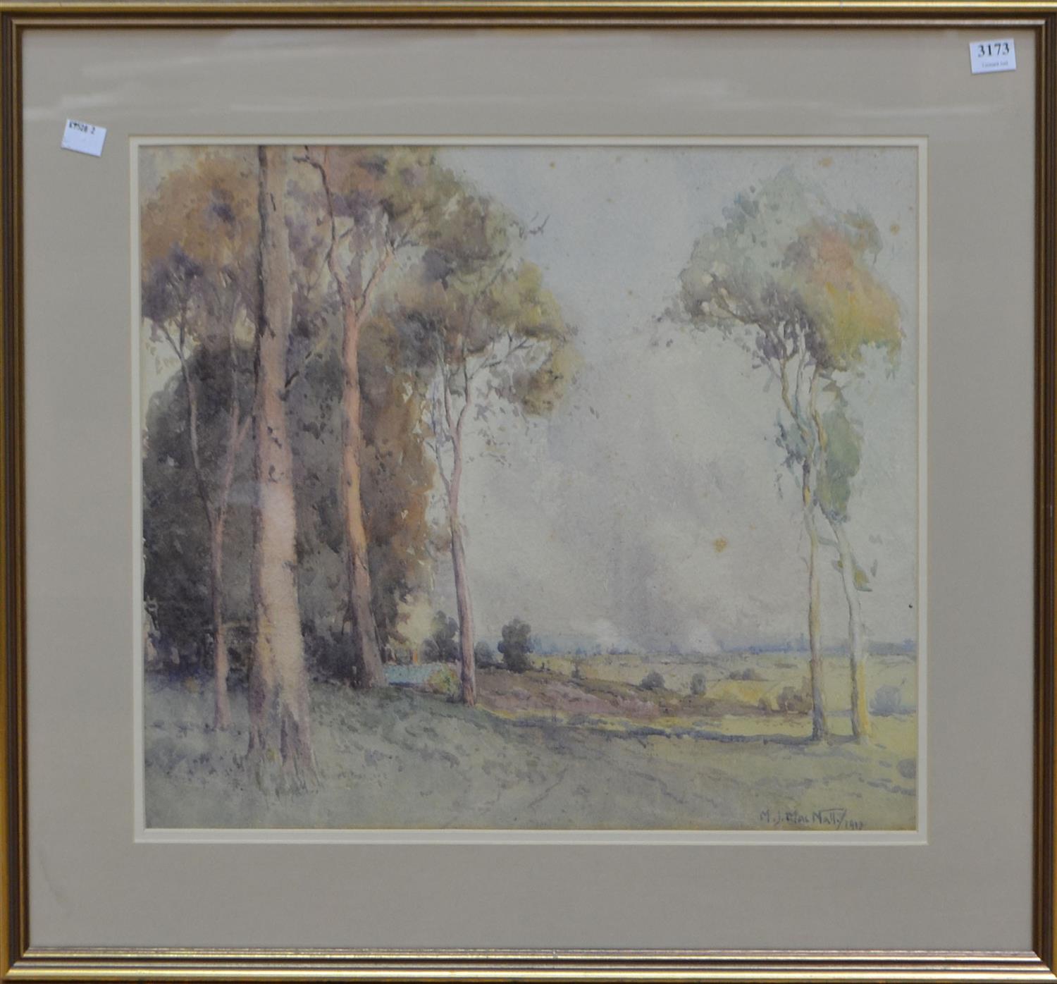M. J. MCNALLY, LANDSCAPE, WATERCOLOUR, 39 X 44 CM, FRAME SIZE: 56 X 69CM, CONDITION: FOXING THROUGHOUT AND DISCOLOURATION