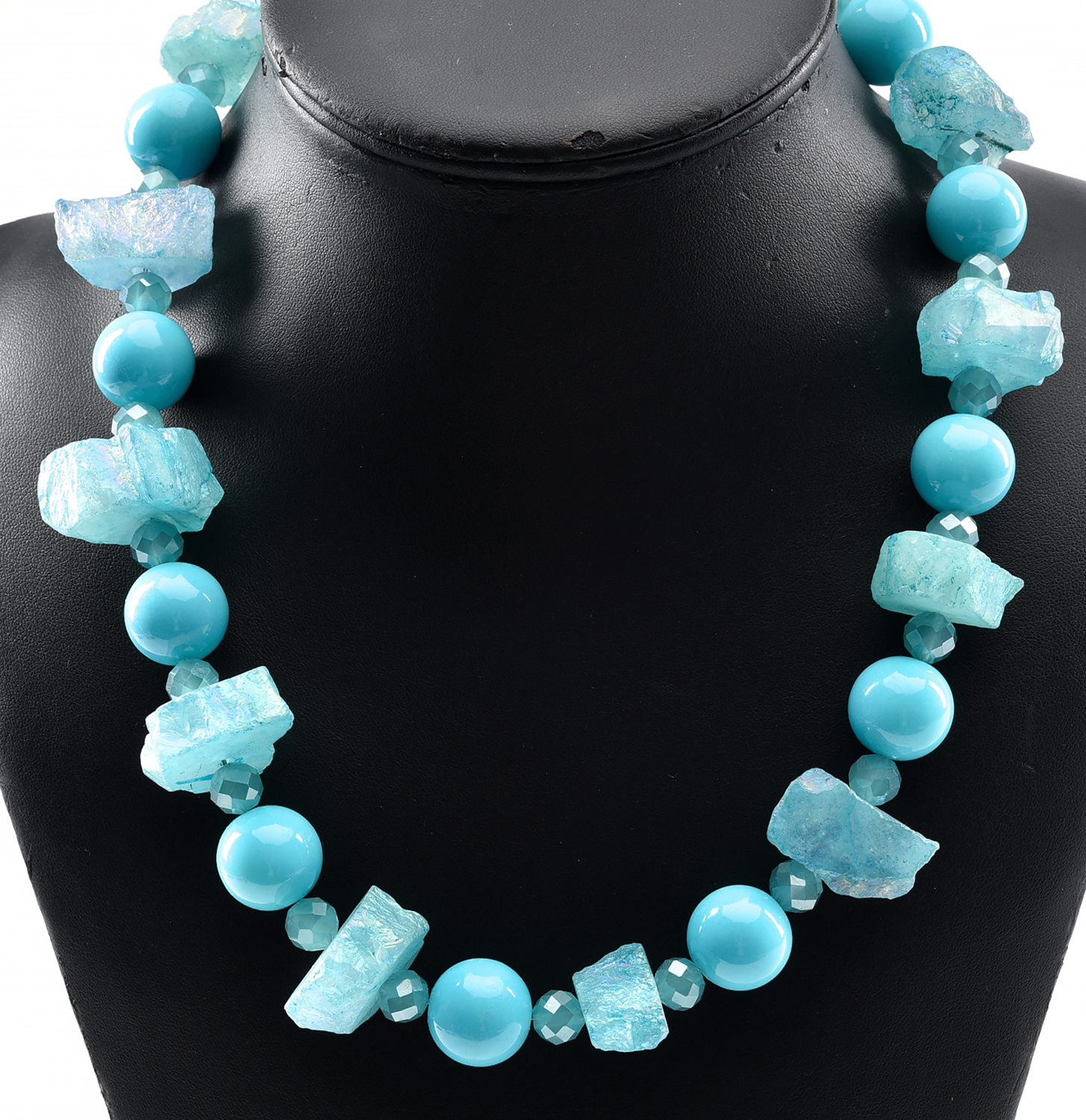 A BLUE STONE BEAD NECKLACE, TOTAL LENGTH 500MM