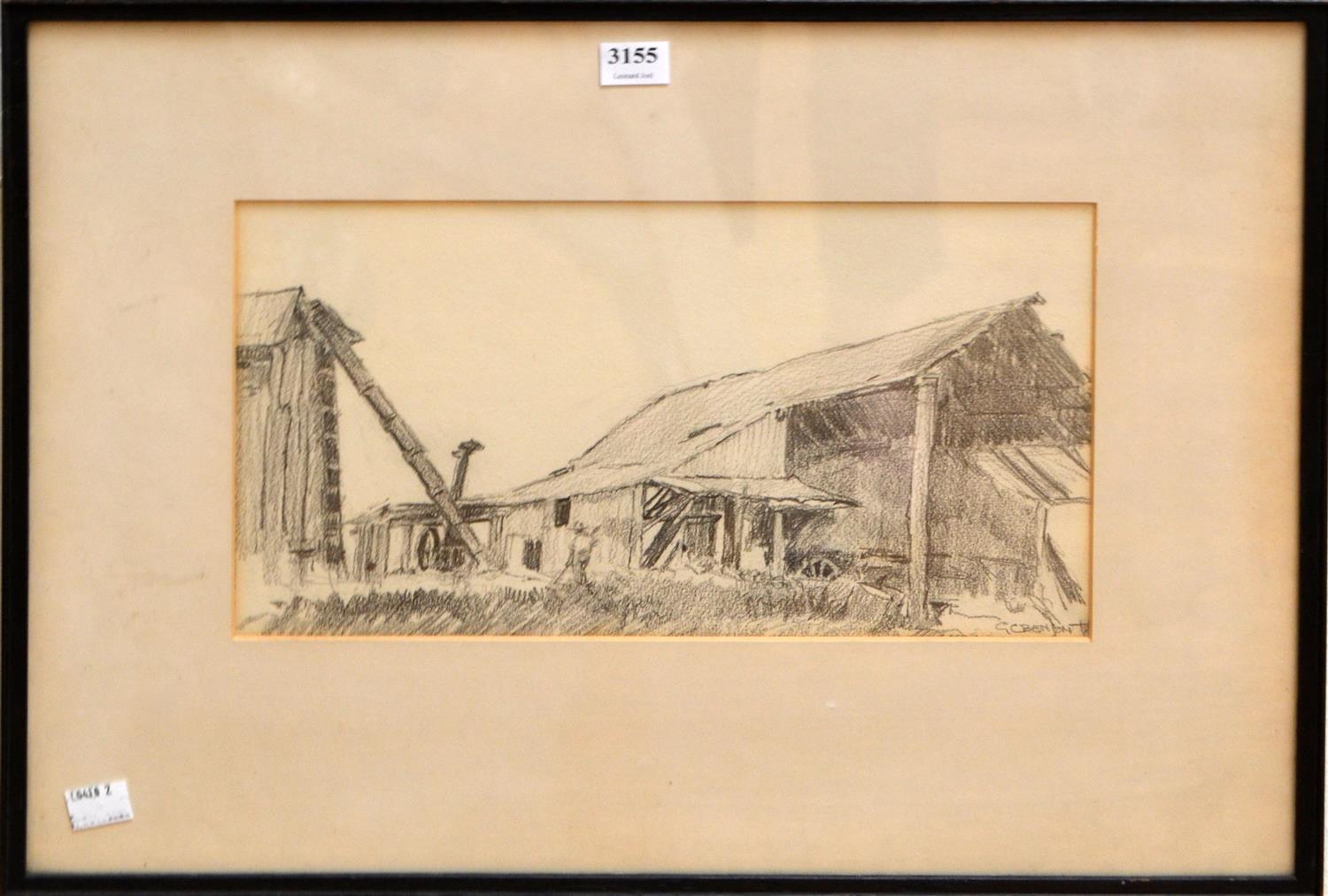 GEORGE COURTNEY BENSON, LANDSCAPE, PENCIL ON PAPER, 19 X 31CM, FRAME SIZE: 37 X 49CM, CONDITION: SLIGHT DISCOLOURATION ON MOUNT, LEONARD JOEL DELIVERY SIZE: SMALL