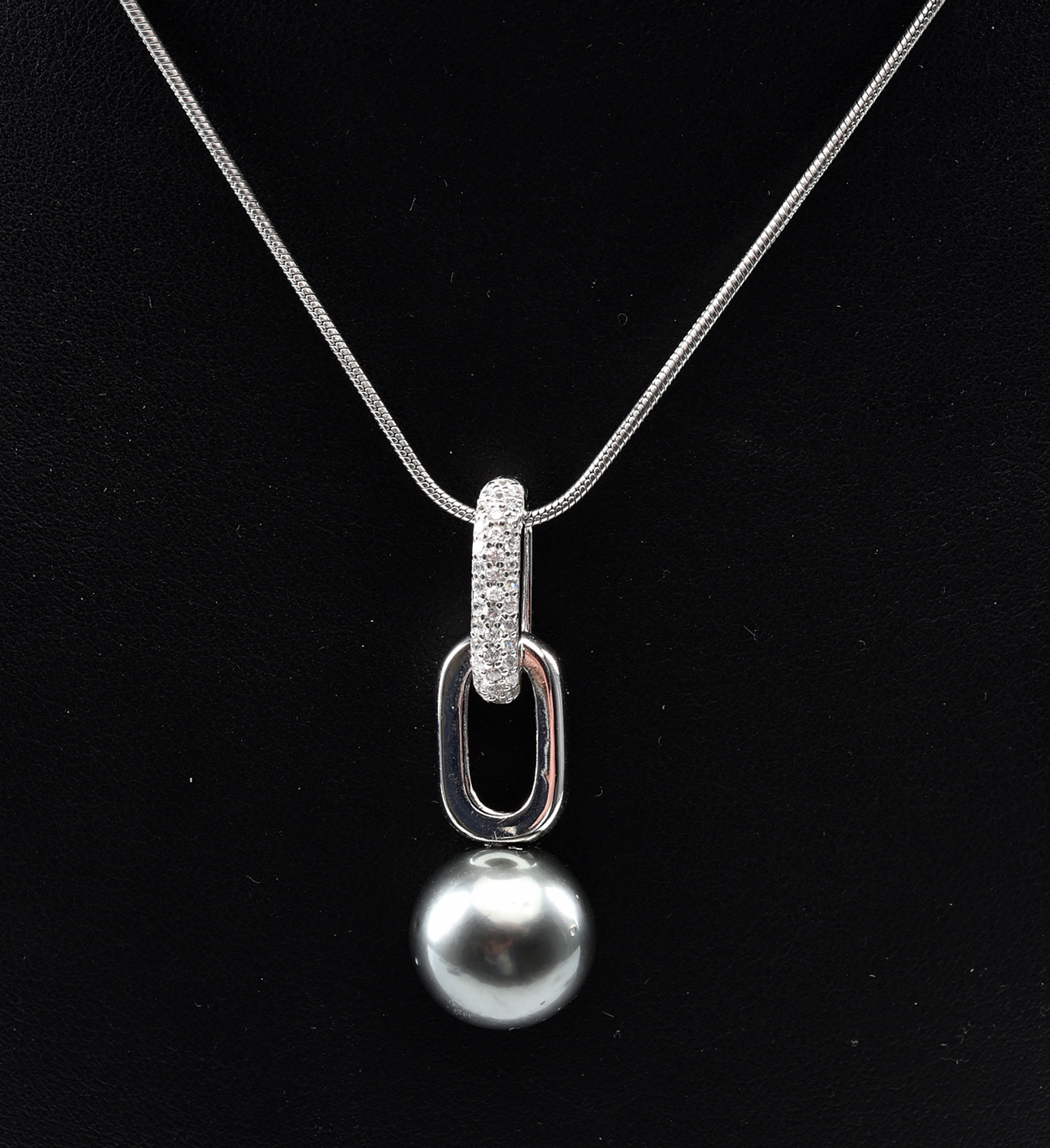 A TAHITIAN PEARL (13.7MM) AND CUBIC ZIRCONIA PENDANT IN STERLING SILVER