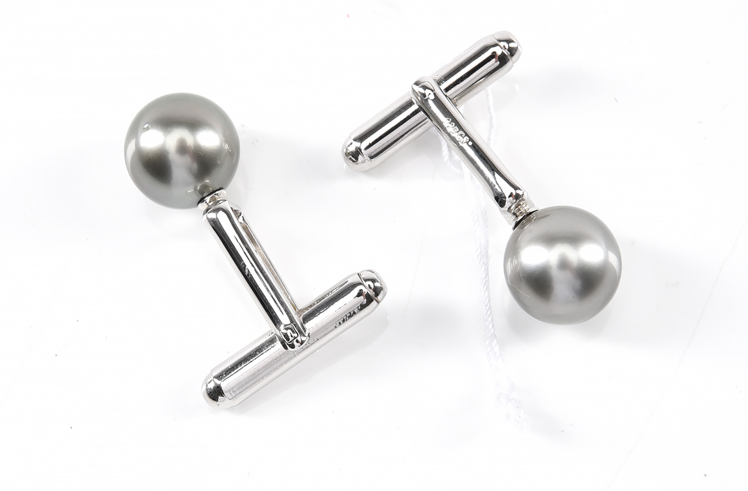 A PAIR OF TAHITIAN PEARL (11MM) CUFFLINKS IN STERLING SILVER