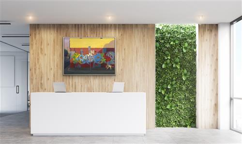 Work in very good condition with no faults to report. Housed in a white shadow box frame with minor surface marks located upper left on frame. Overall size 82 x 114 x 5.5cm
