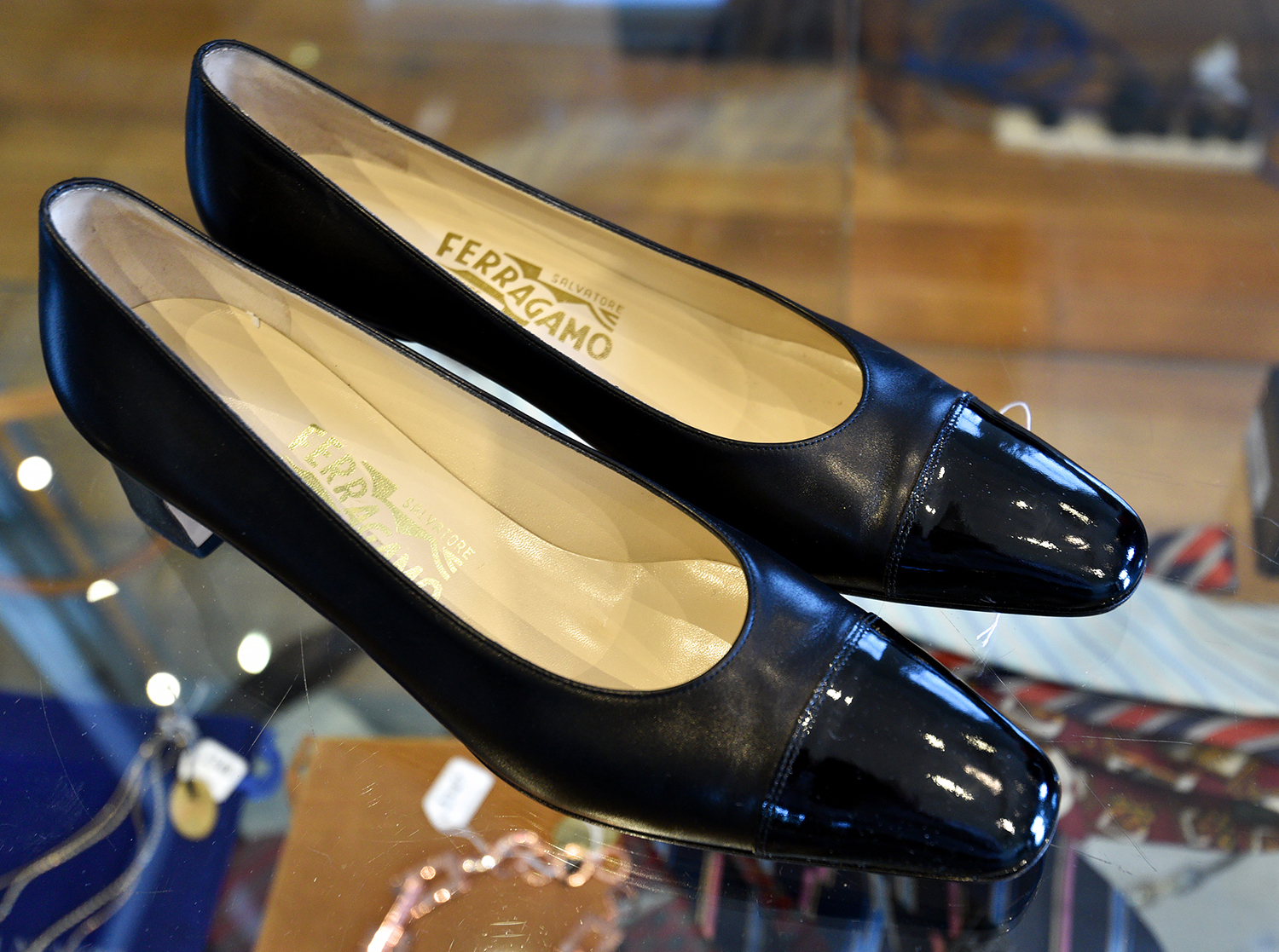 A PAIR OF COURT SHOES BY SALVATORE FERRAGAMO, SIZE 9.5C