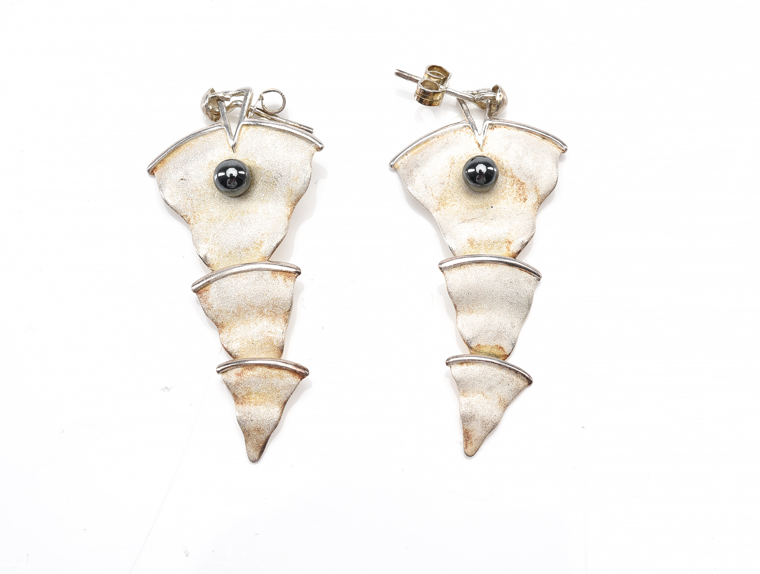 A PAIR OF HEMATITE DROP EARRINGS IN STERLING SILVER