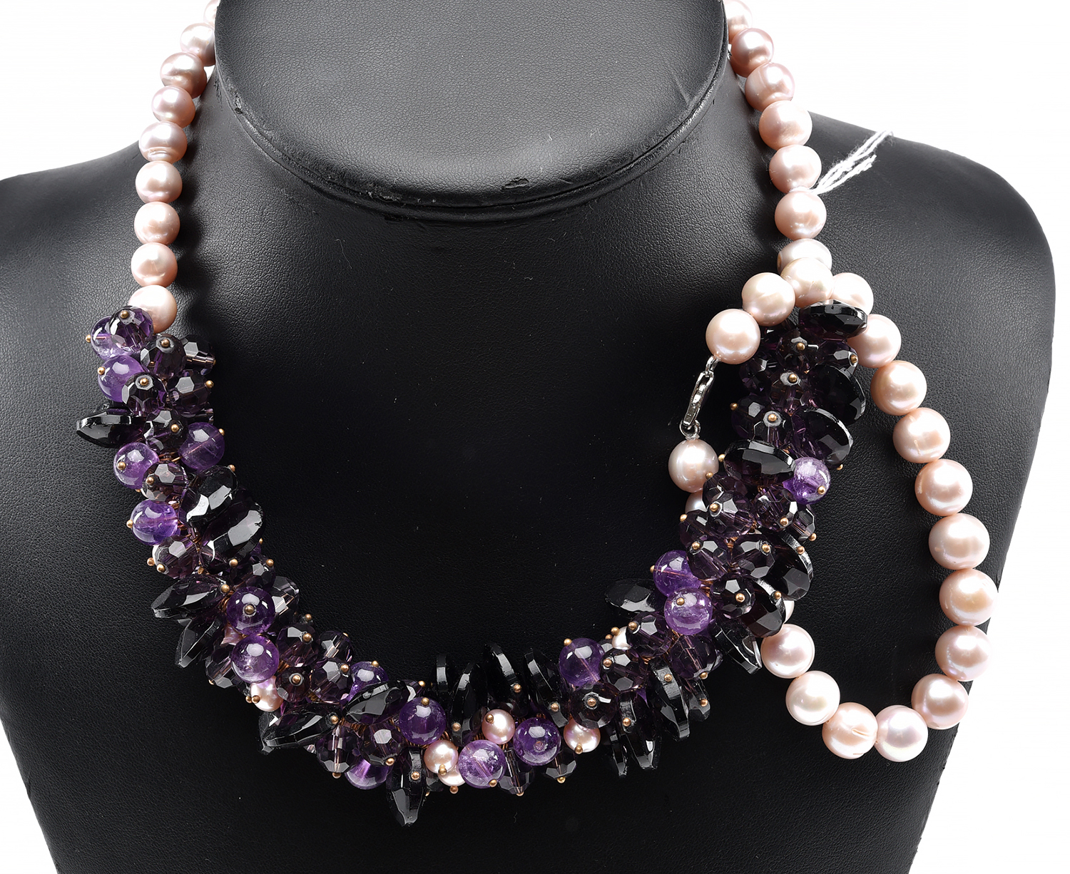 A PINK FRESHWATER PEARL AND AMETHYST BEAD NECKLACE