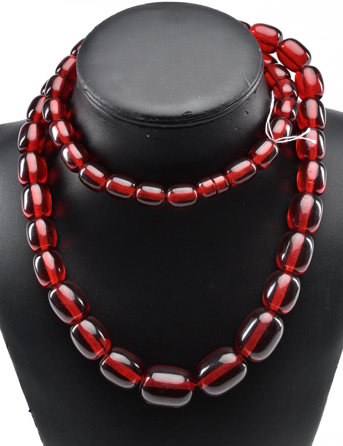A LONG STRAND OF RESIN AMBER TYPE BEADS