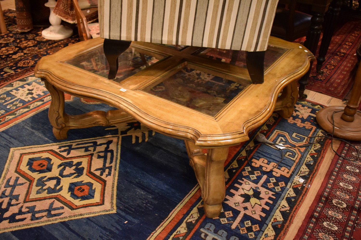 A FRENCH STYLE INLAID COFFEE TABLE (45h x 110w x 110d CM)