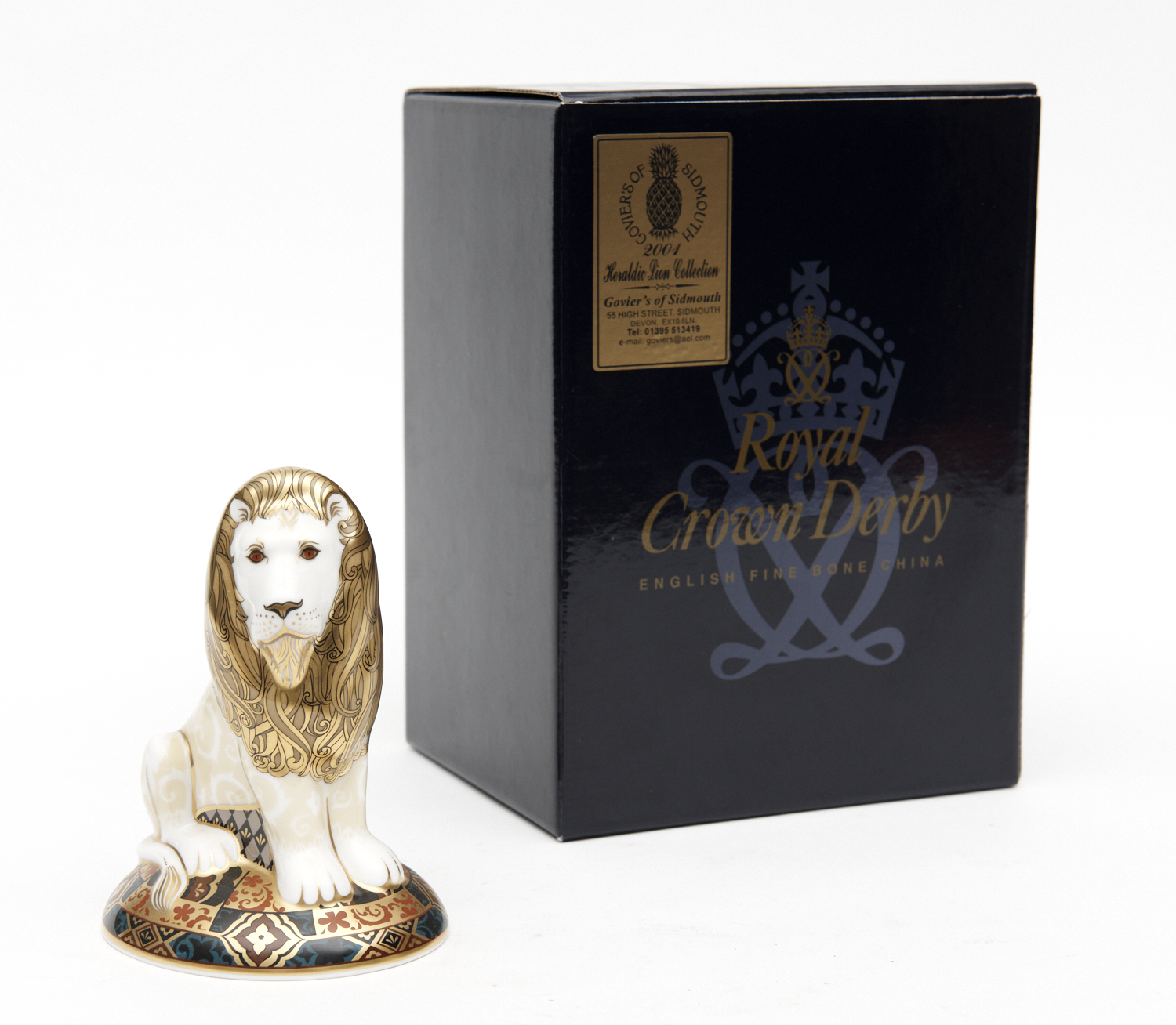 A LIMITED EDITION ROYAL CROWN DERBY HERALDIC LION PAPERWEIGHT, BOXED, WITH CERTIFICATION CARD, NO. 192/2000