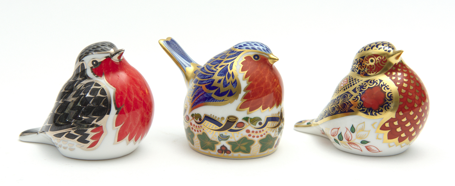 THREE ROYAL CROWN DERBY ROBIN FIGURINES
