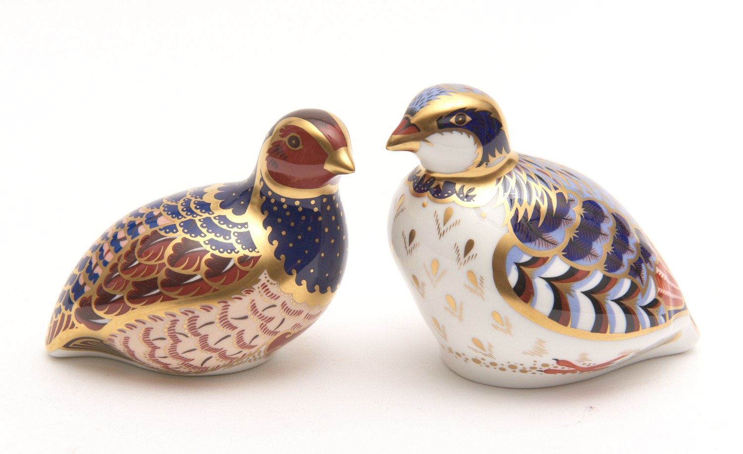 TWO ROYAL CROWN DERBY BIRD PAPERWEIGHTS, INCLUDING A PARTRIDGE NO. 622/4500 AND RED LEGGED PARTRIDGE, BOXED