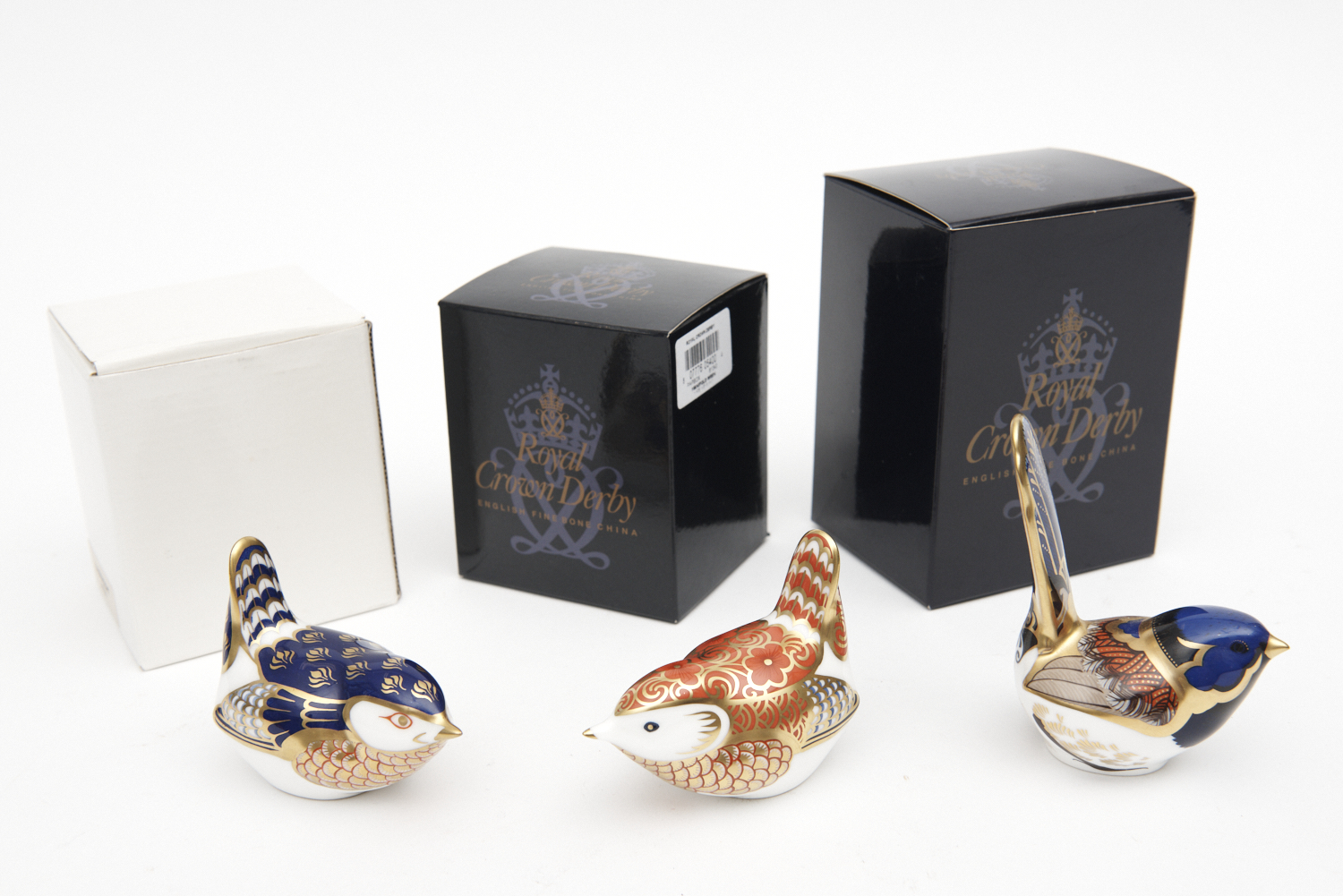 THREE ROYAL CROWN DERBY WREN PAPERWEIGHTS, INCLUDING FAIRY WREN, MANIFOLD WREN, AND WREN, BOXED