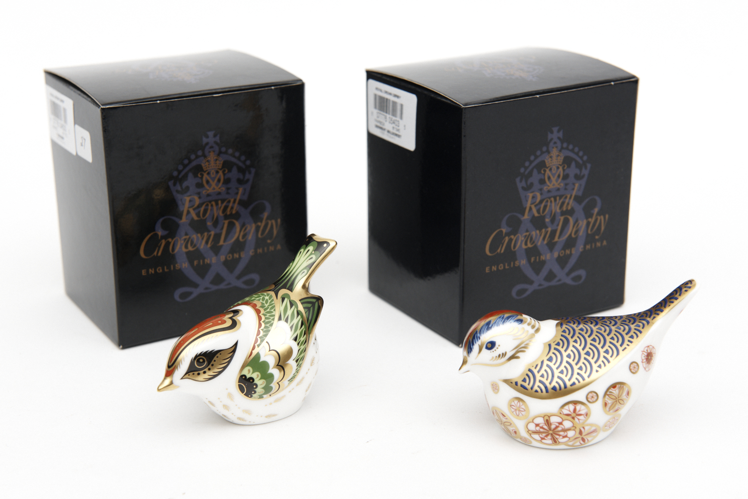 TWO ROYAL CROWN DERBY BIRD PAPERWEIGHTS, INCLUDING A LIMITED EDITION FIRE CREST, NO. 27/250, WITH CERTIFICATION CARD, AND A DERWENT GOLD CREST, BOTH BOXED