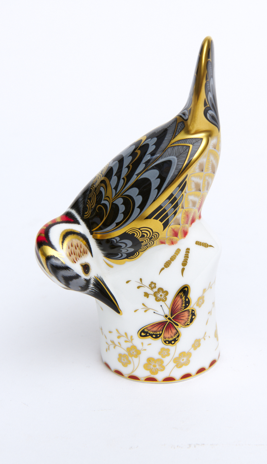 A ROYAL CROWN DERBY LIMITED EDITION GREAT SPOTTED WOODPECKER FIGURINE, 65/150, BOXED WITH CERTIFICATION CARD