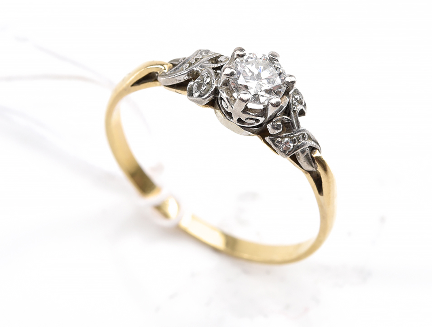 A SOLITAIRE DIAMOND RING, ESTIMATED WEIGHT 0.25CTS, IN 18CT TWO TONE GOLD