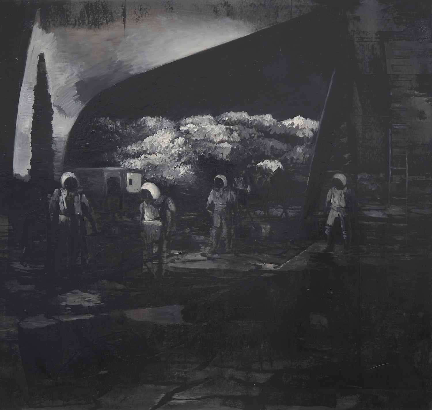 In Destination Moon 2008, Norrie adheres to a monochromatic palette. Dark and black are words frequently used to describe her work and this is not without intention.