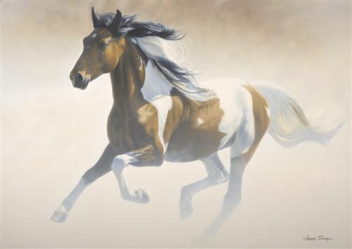 This work is in very good condition. There are som elight scuff marks seen in the lower edge of the work running horizontally. There is another scuff mark seen in the middle left hand side. There is accretion in the centre (on the white pigment there is a hairline brown mark). Work is not framed (stretched only).