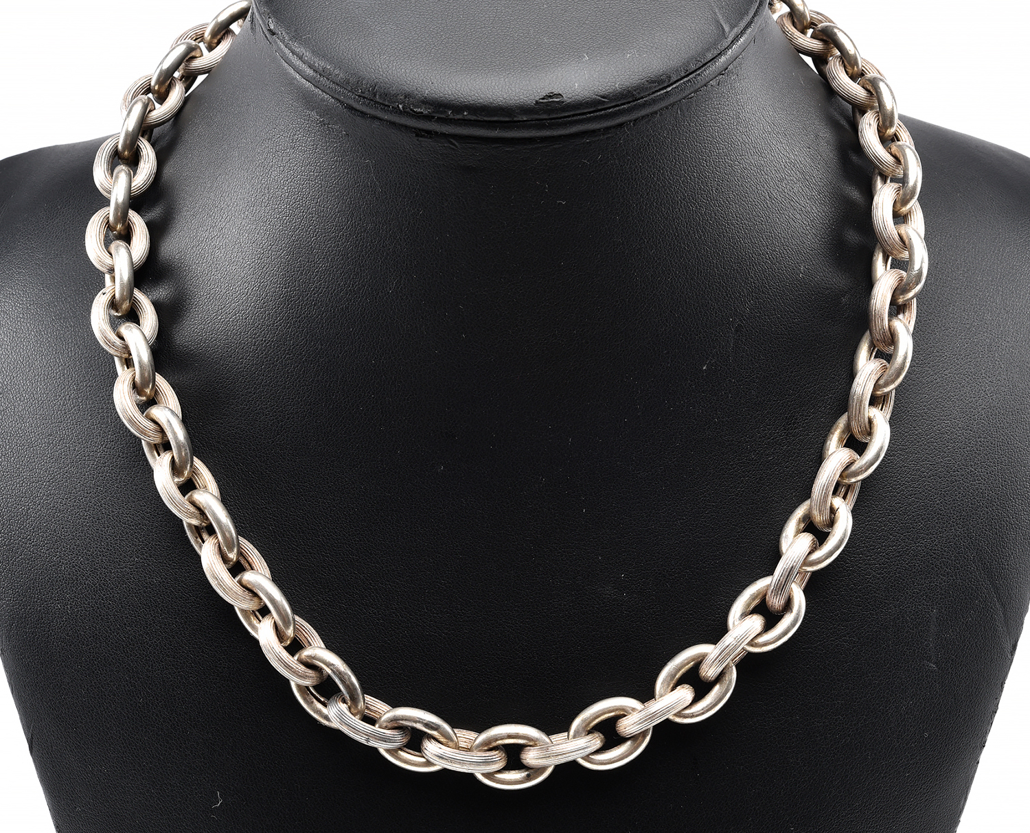A LARGE OVAL LINK CHAIN IN STERLING SILVER