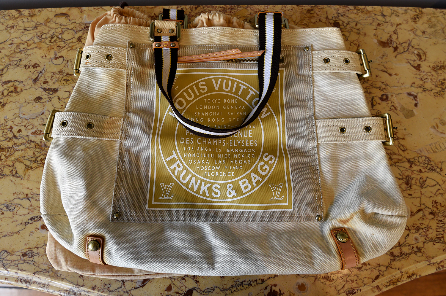 CONDITION GRADE 6: In fair condition. This piece shows significant wear and/or damage. It may require repair or refurbishment in order to be used. Heavy staining on bag. Red pen mark to front.