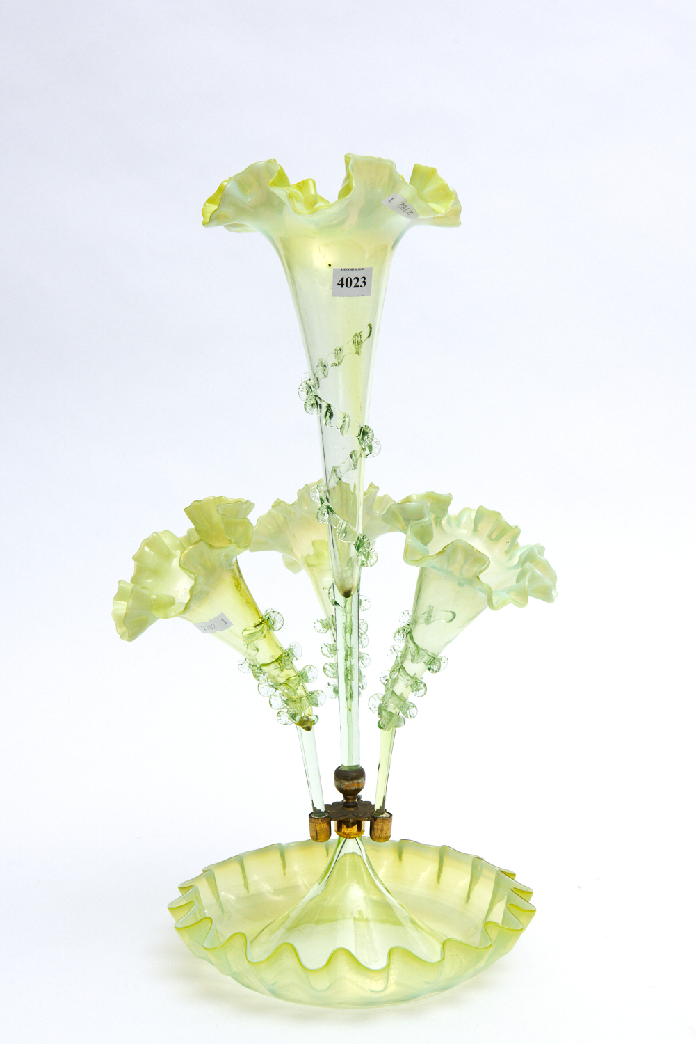 A VICTORIAN FOUR SCONCE VASELINE EPERGNE
