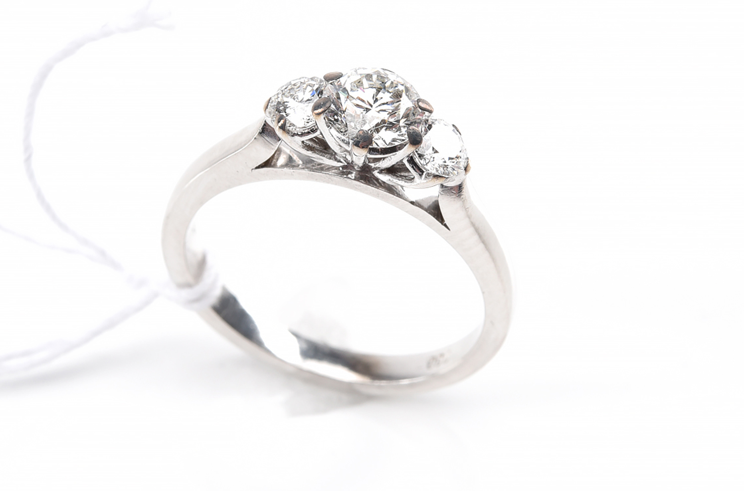 A SOLITAIRE DIAMOND RING - The round brilliant cut diamond weighing 1.406cts, in platinum, ring size K with accompanying Auscert cer...
