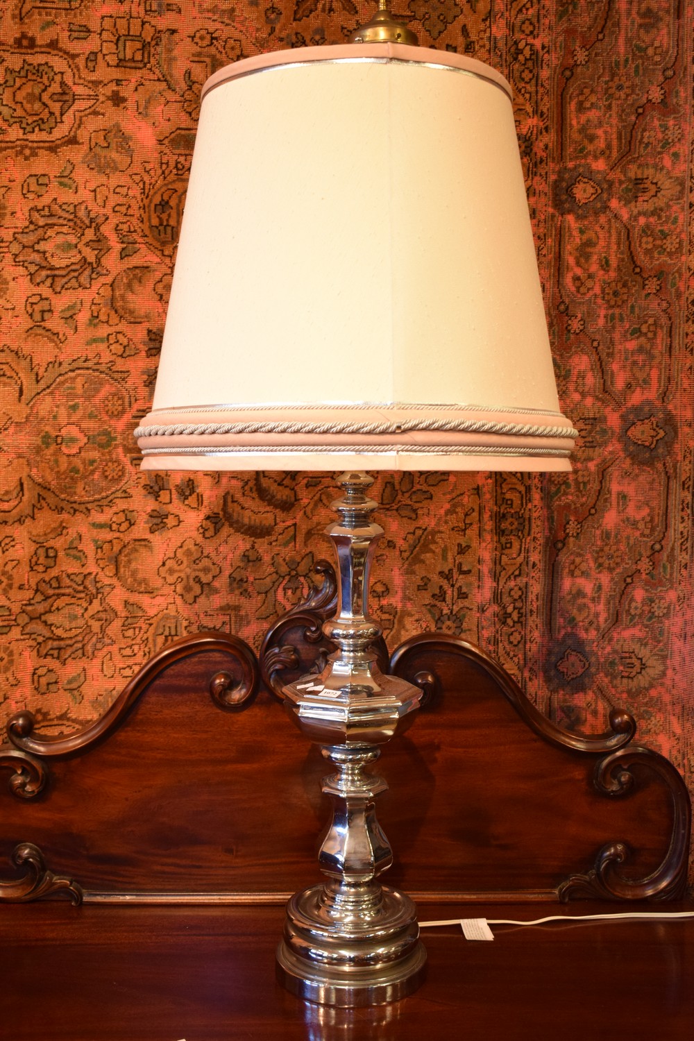 A LARGE CLASSICAL STYLE CHROME TABLE LAMP