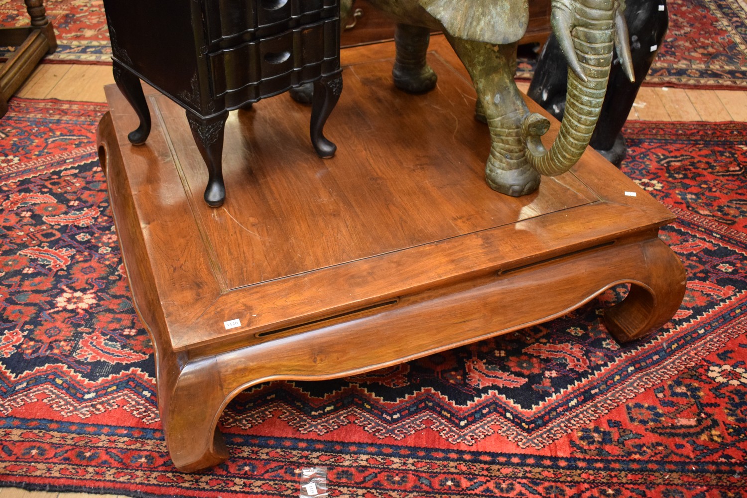AN ANTIQUE OPIUM TABLE (35H x 108W x 108D CM)