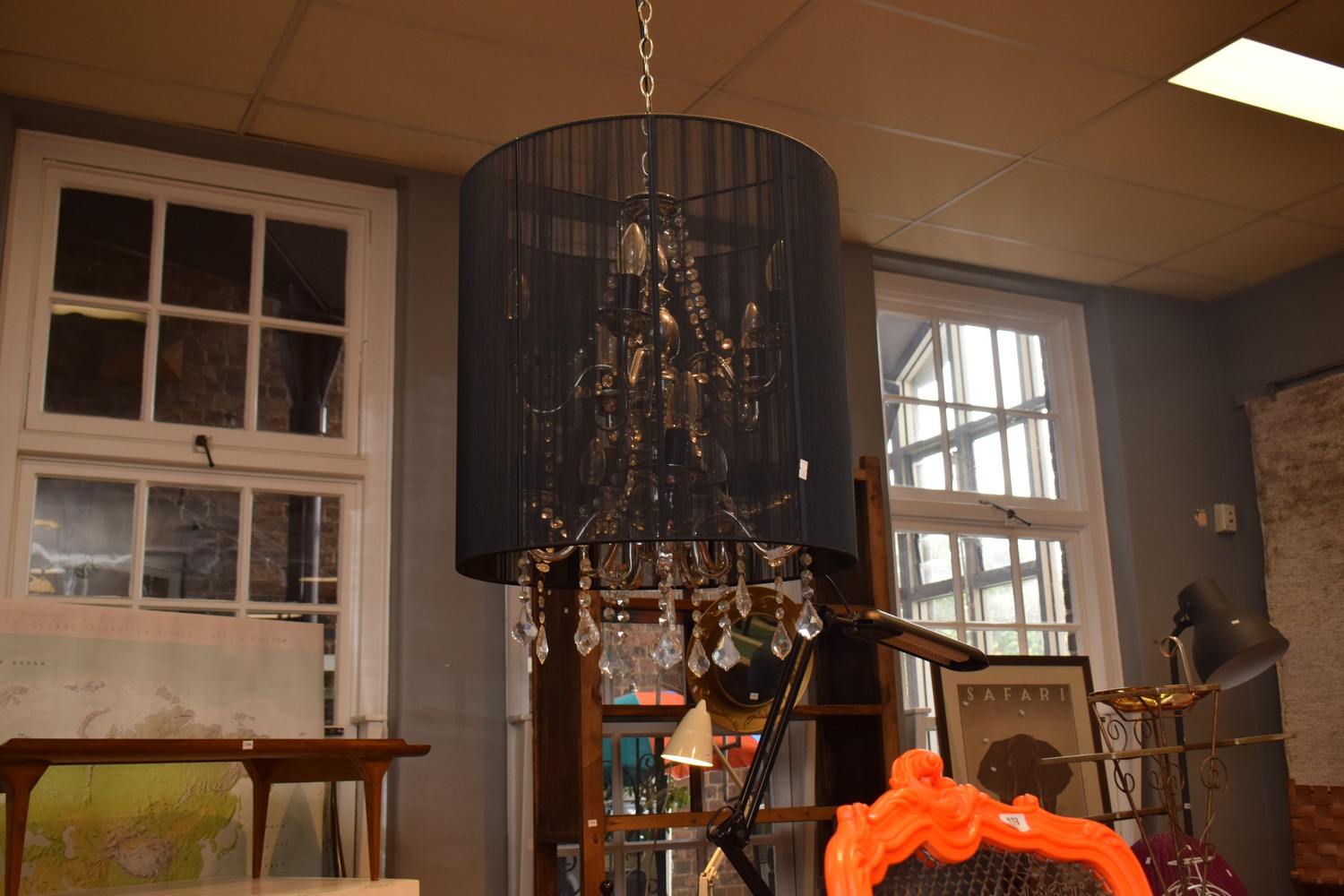 A PAIR OF CONTEMPORARY CHANDELIERS IN BLACK SHADES