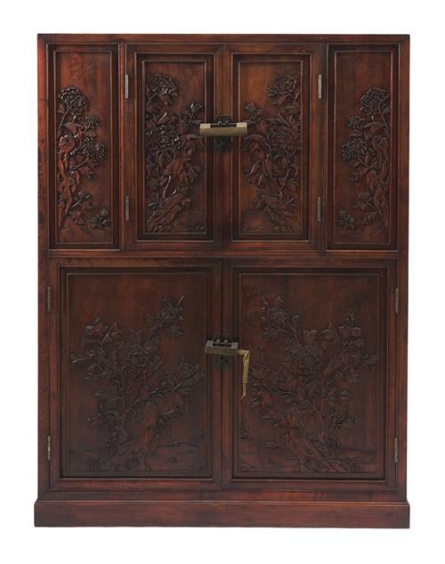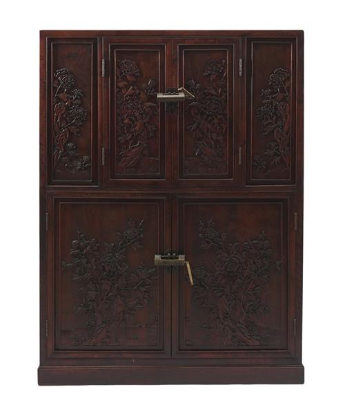 With four doors and two internal spaces, the doors intricately carved in relief with seasonal flowers. Together with old Chinese locks.