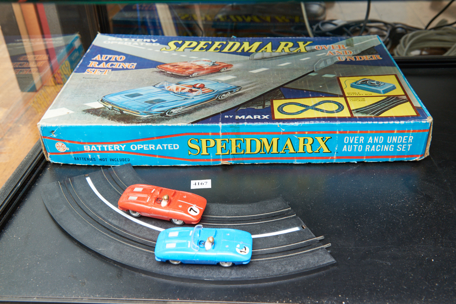 A 1940s MARX SPEEDMARX BATTERY OPERATED SLOT CAR SET