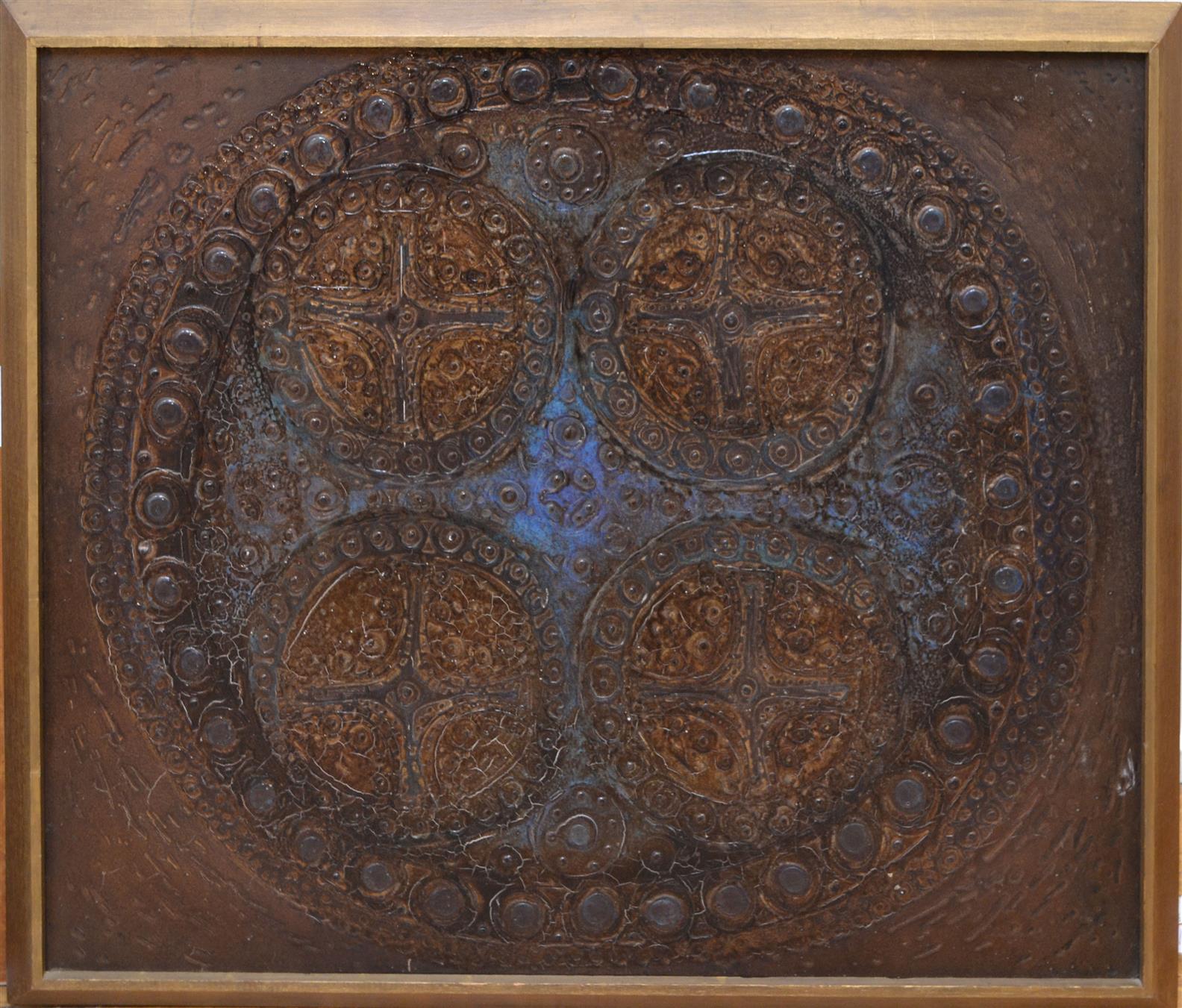 ARTIST UNKNOWN, UNTITLED, MIXED MEDIA ON BOARD, 82 X 100CM FRAME SIZE: 92 X 102CM, CONDITION: SURFACE APRASIONS AND CRACKING SEEN THROUGHOUT, LEONARD JOEL DELIVERY SIZE: LARGE