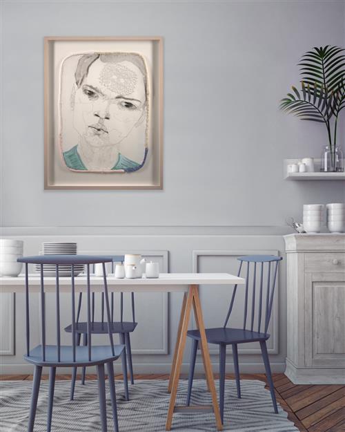 Work in very good condition, no faults to report. Housed in a white washed contemporary box frame. overall size: 100.5 x 78.5 x 6.5cm.