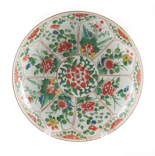 Decorated with lapette-form reserves with flowers surrounding a central roundel of lotus blossom.