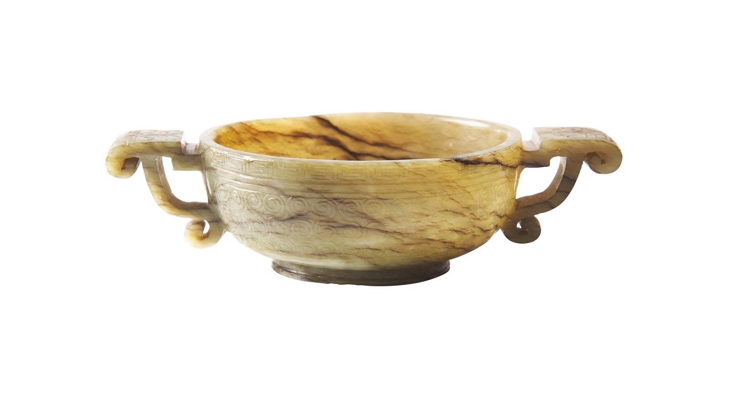 A CHINESE JADE TWIN-HANDLED LIBATION CUP