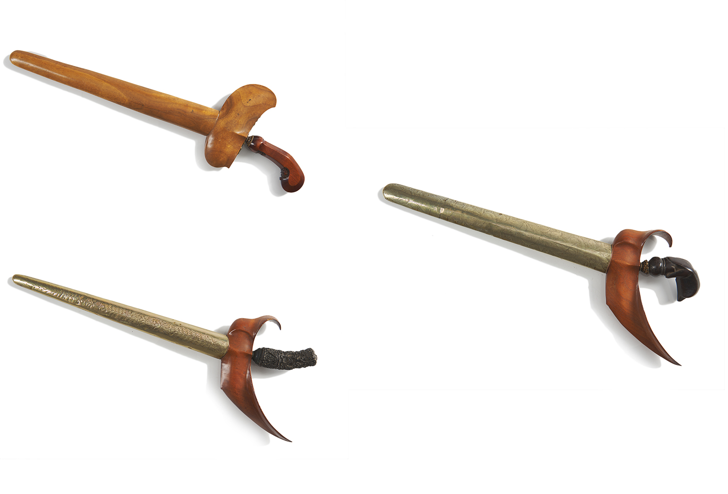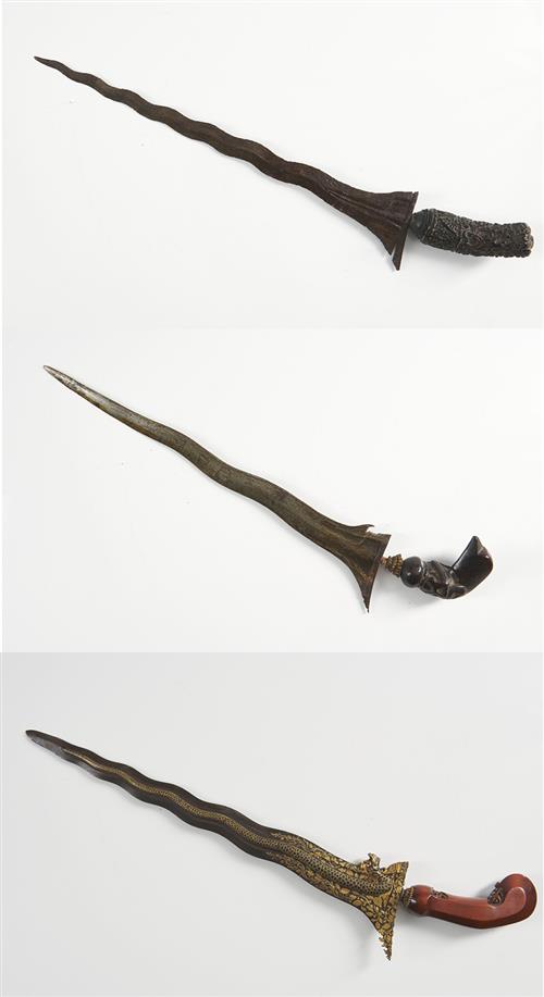 one other kris with splitting to the hardwood handle., the last kris with the handle not secured properly to the blade.