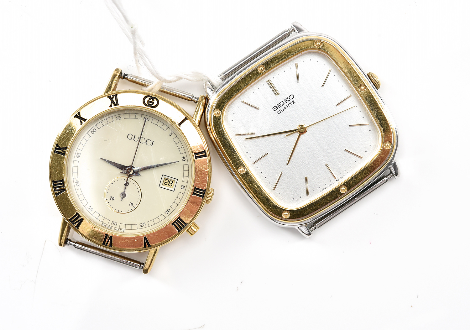A SEIKO WRISTWATCH, TOGETHER WITH A GUCCI WRISTWATCH