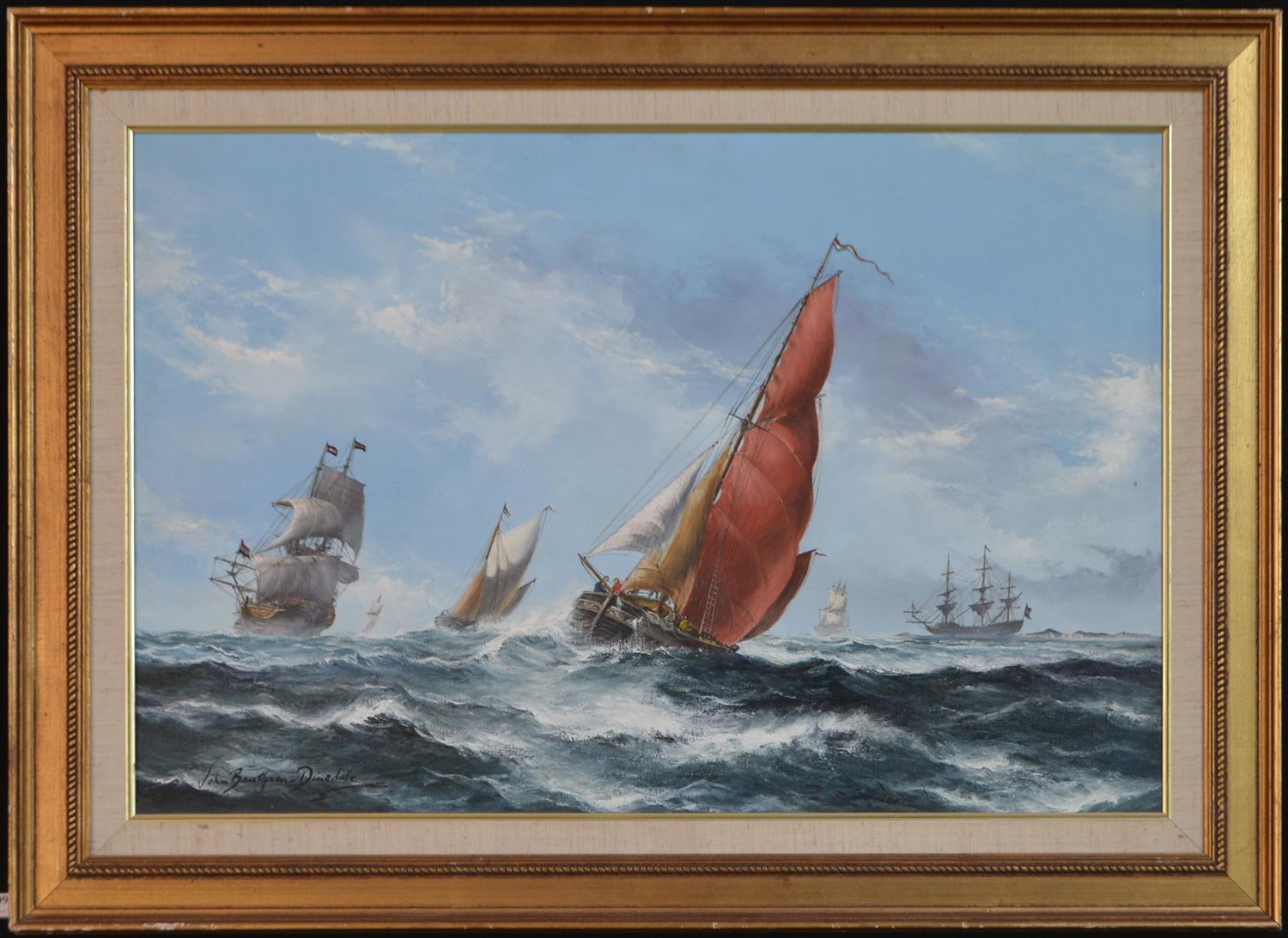 JOHN BENTHAM-DINSDALE, THE RISING WIND, OIL ON CANVAS, IMAGE SIZE: 49 X 74CM, FRAME SIZE: 66 X 92CM, CONDITION: SURFACE MARKS