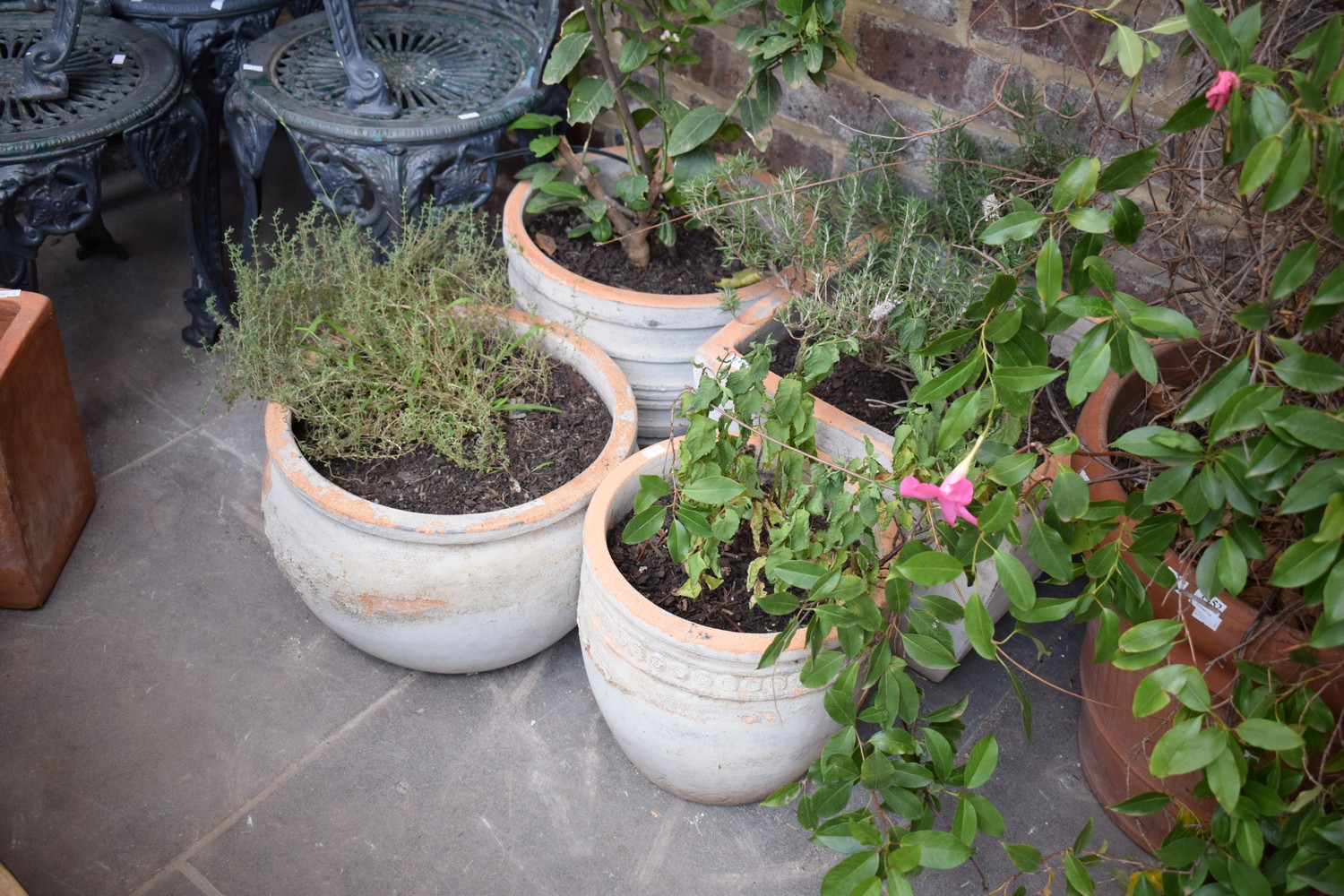 A COLLECTION OF FOUR TERRACOTTA POTS WITH PLANTS