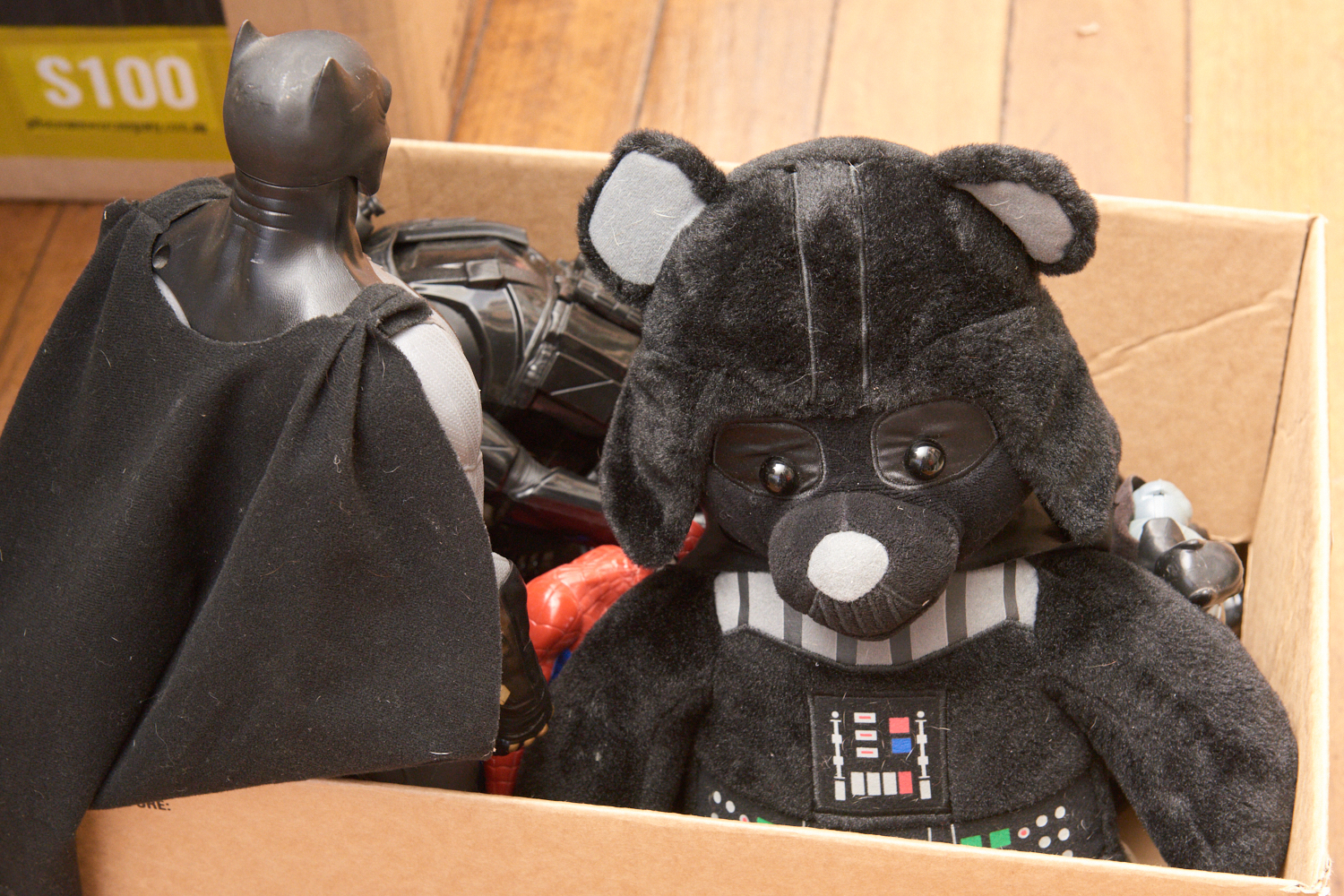A COLLECTION OF SIX BAT MAN AND SUPERMAN PLASTIC AND SOFT TOYS