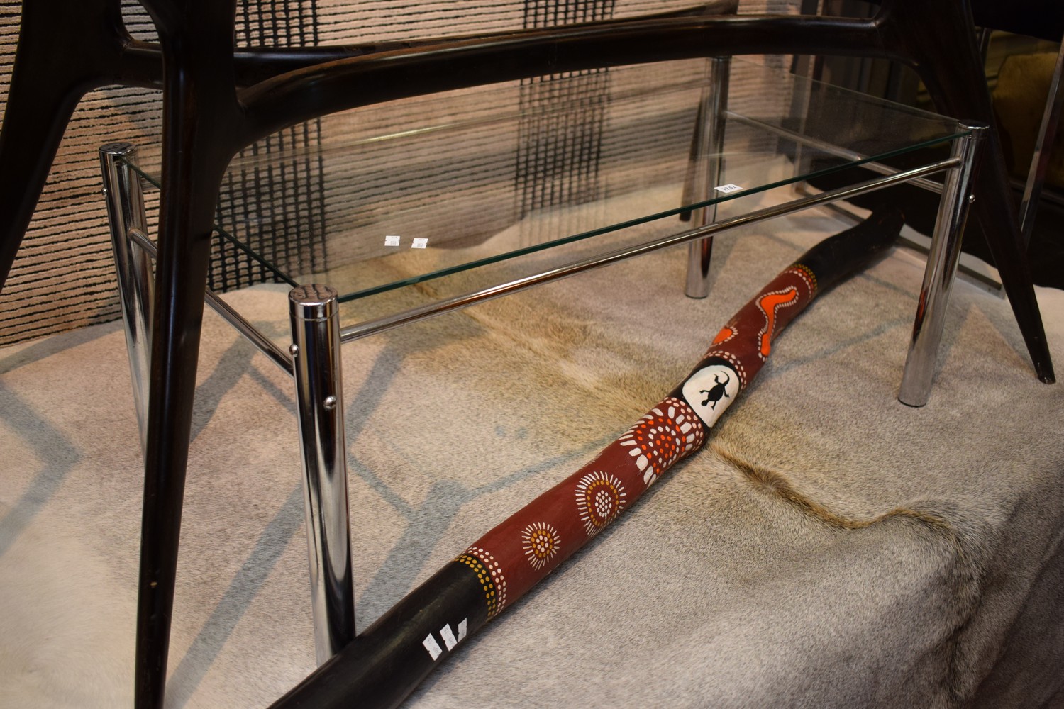 A CONTEMPORARY CHROME AND GLASS COFFEE TABLE