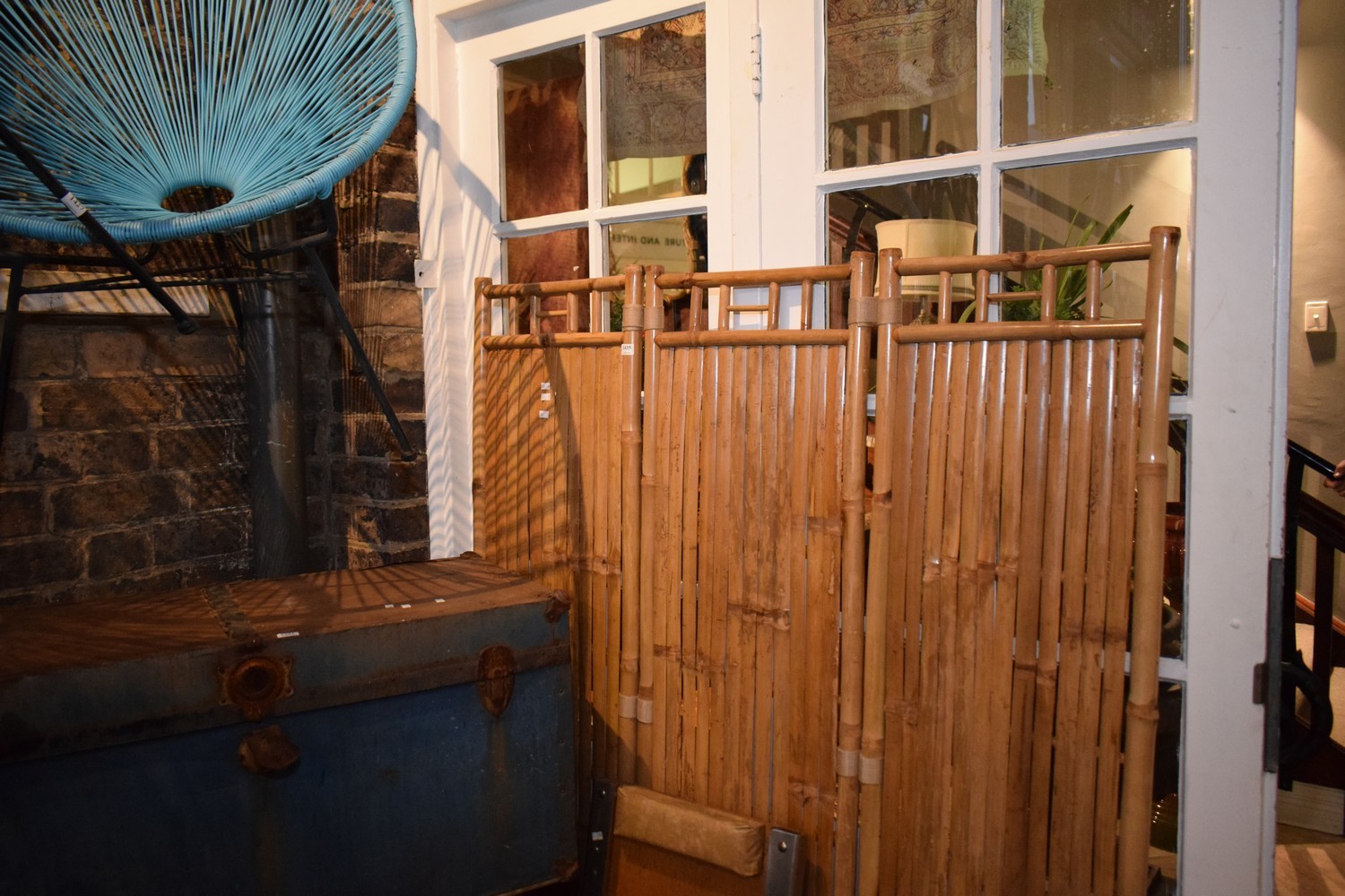 A THREE PANEL BAMBOO PRIVACY SCREEN