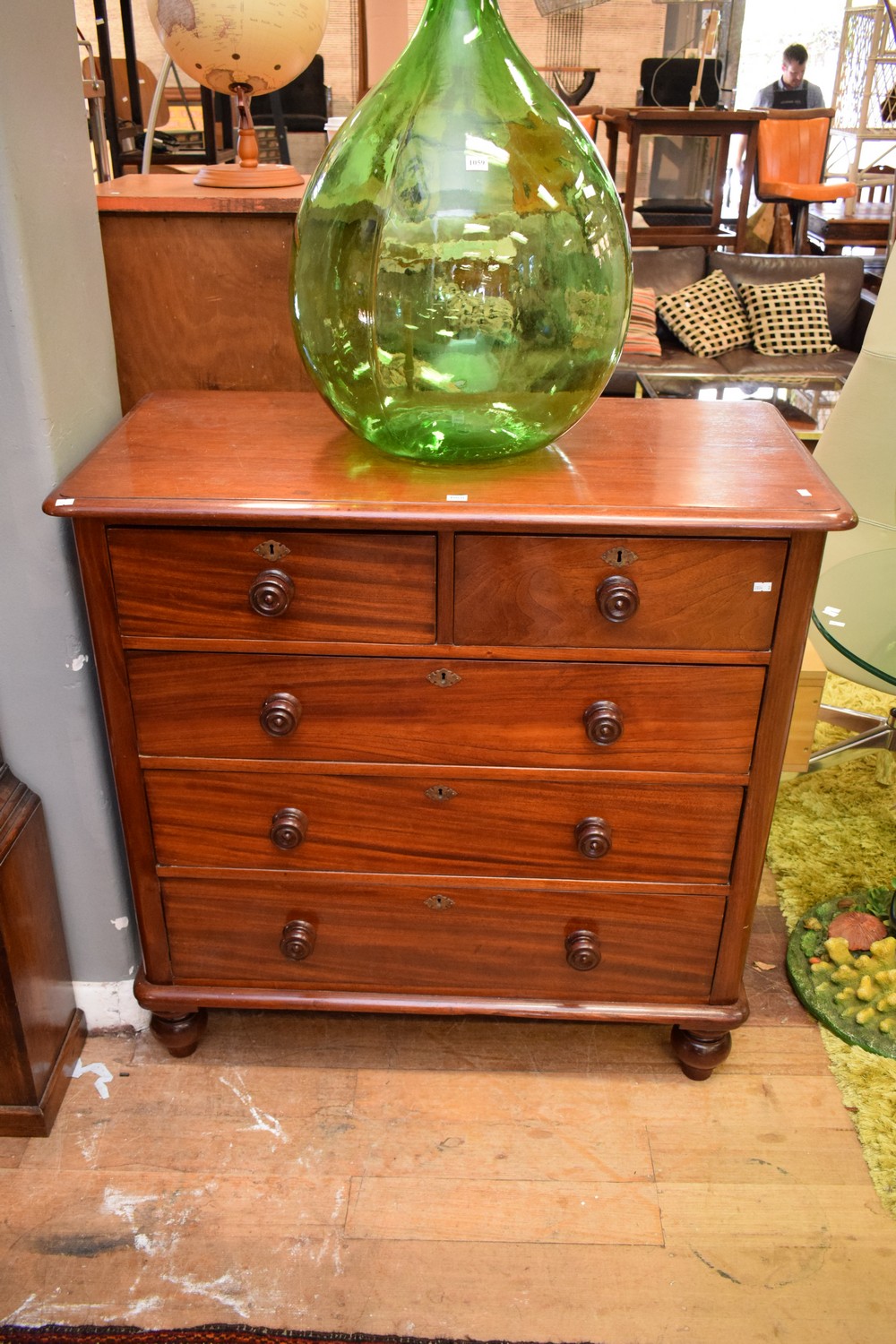 A VICTORIAN CEDAR FIVE DRAWER CHEST (103H x 104W x 52D CM)
