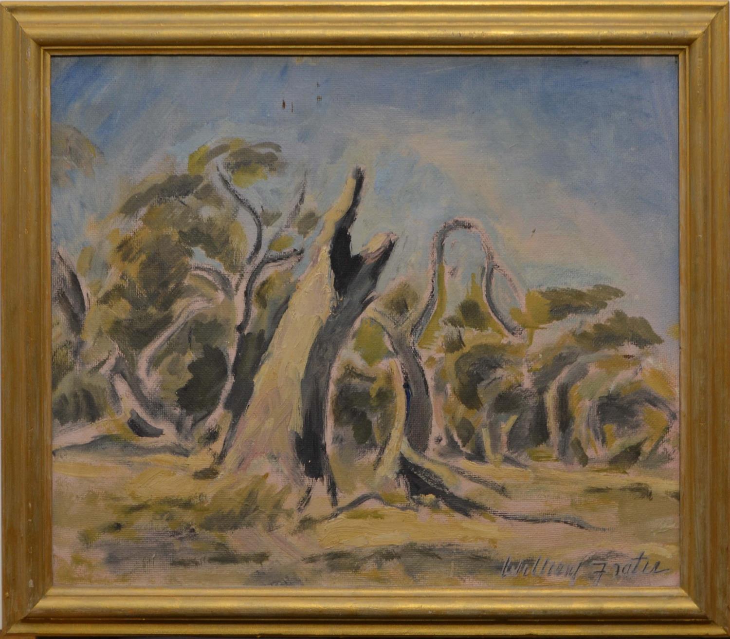 WILLIAM FRATER, LANDSCAPE, OIL ON BOARD, 49 X 59CM FRAME SIZE: 59 X 69CM, CONDITION: GOOD, LOSSES TO TOP EDGES, MARKS TO FRAME