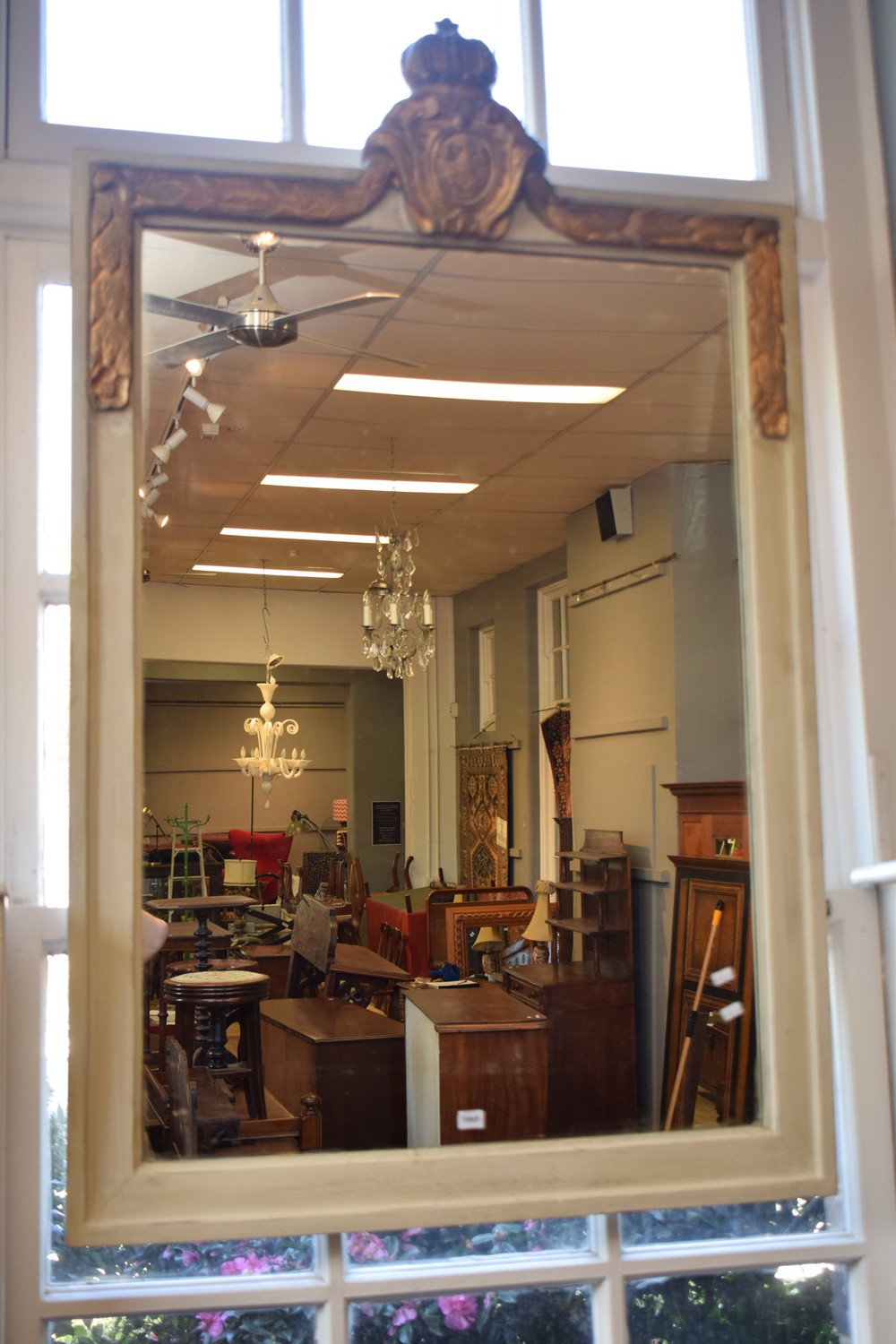 A GUSTAVIAN STYLE PAINT AND PARCEL GILT MIRROR (136H x 83W CM)