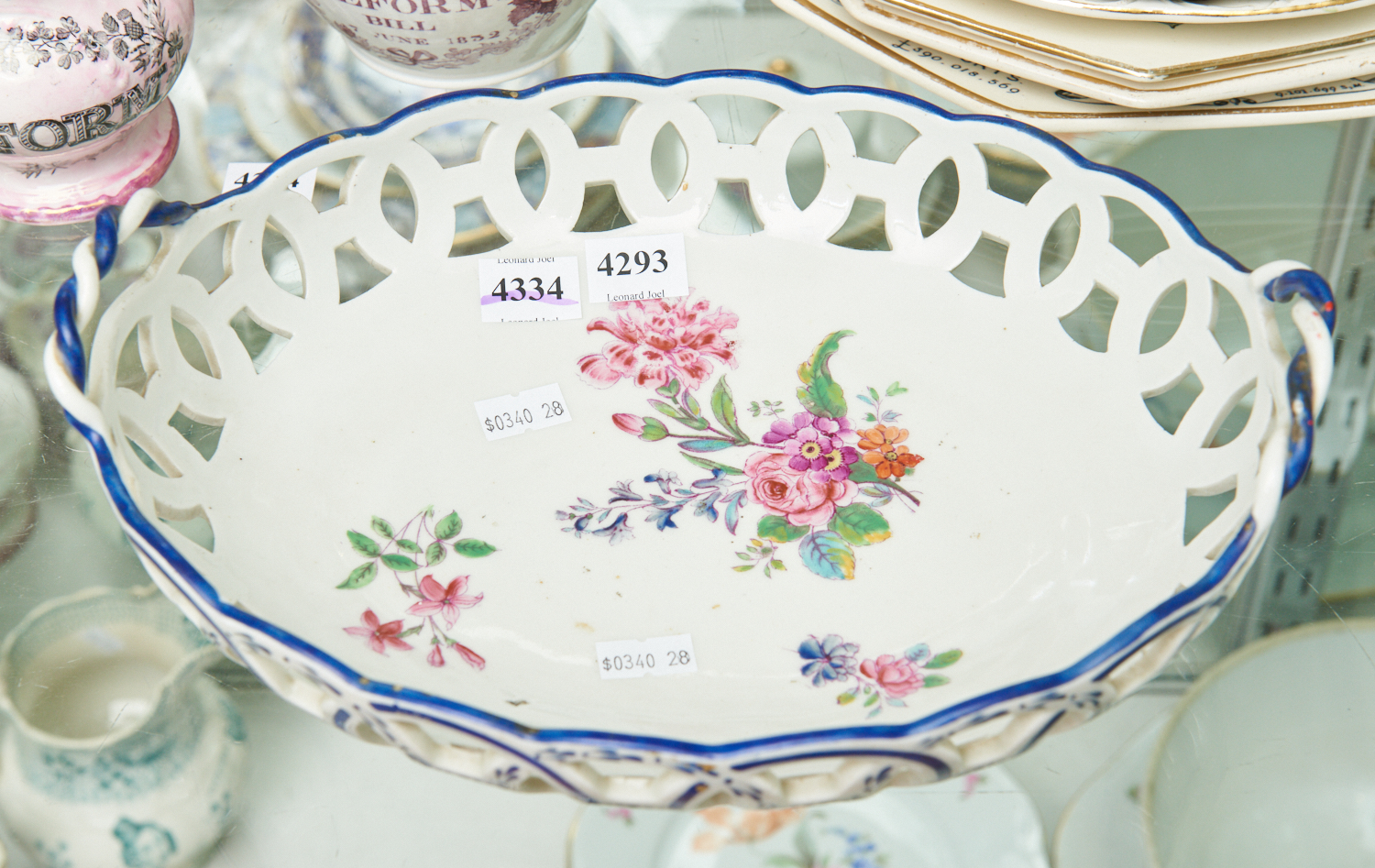 A PIERCED PORCELAIN BOWL, PAINTED WITH FLORAL VIGNETTES (HAIRLINE)