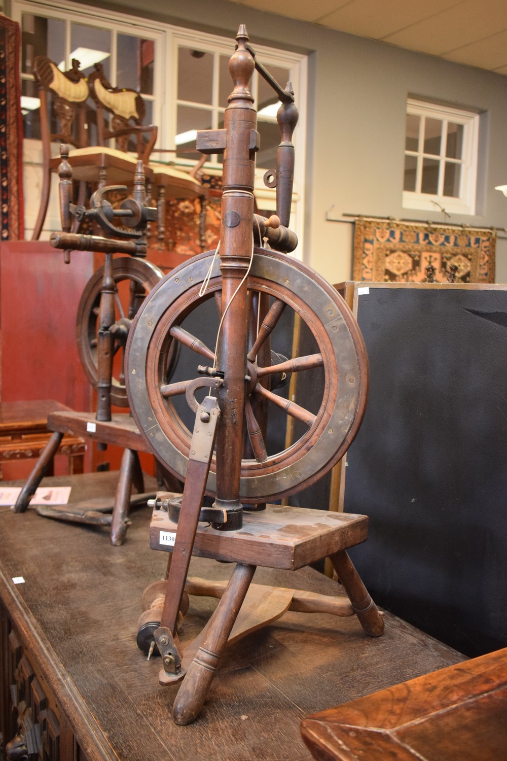 AN ANTIQUE SPINNING WHEEL (A/F)