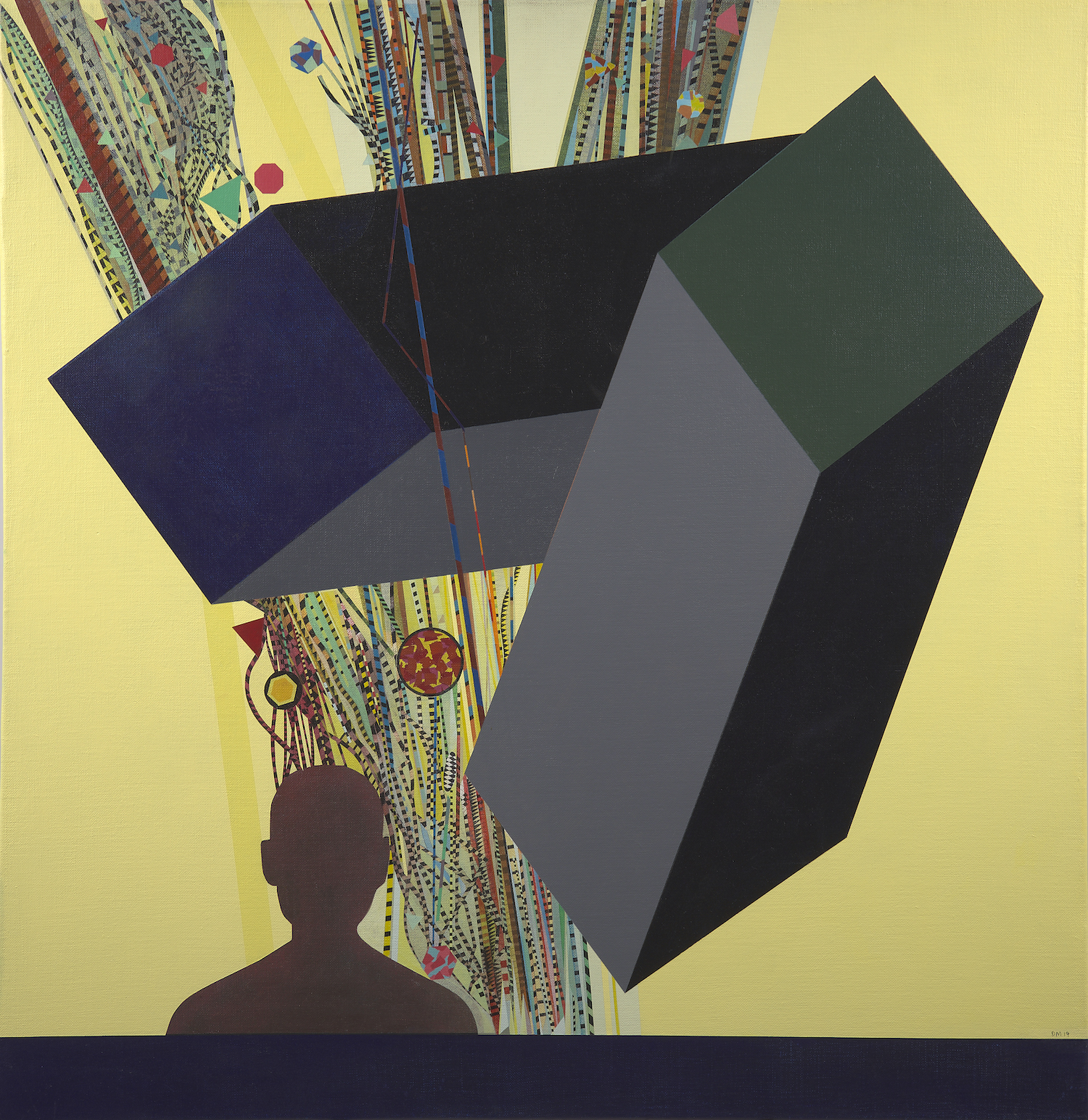 signed with initials and dated lower right: DM 19